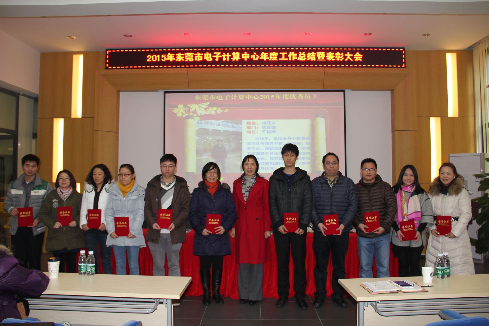 東莞市電子計(jì)算中心2015年度工作總結(jié)暨優(yōu)秀員工表彰大會(huì)于1月27日在東莞弈投孵化器路演大廳如期舉行。中心全體員工參加會(huì)議,會(huì)議由中心劉小龍副主任主持。會(huì)議分為兩個(gè)環(huán)節(jié):一是工作總結(jié),二是表彰優(yōu)秀。
